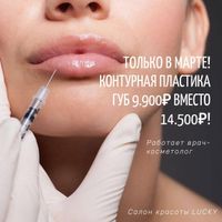 И, конечно, мы не оставим без внимания ваши прекрасные губки. Весь март действует акция на контурную пластику губ 9.900 рублей вместо 14.500 рублей. Препарат - Juvederm Voluma. Работает врач дермато-косметолог.