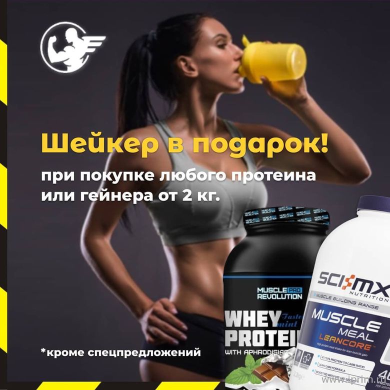 Только три дня - 16, 17, 18 ноября - при покупке 2 килограмм протеина или гейнера, Вы получаете шейкер в подарок.