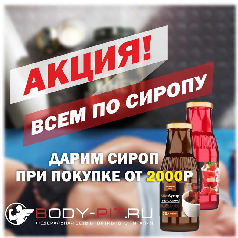 При покупке продукции на сумму от 2 000 рублей магазин спортивного питания "Боди-Пит" дарит вам вкусный, сладкий, ПП-сироп "Slim Fruit" в подарок!