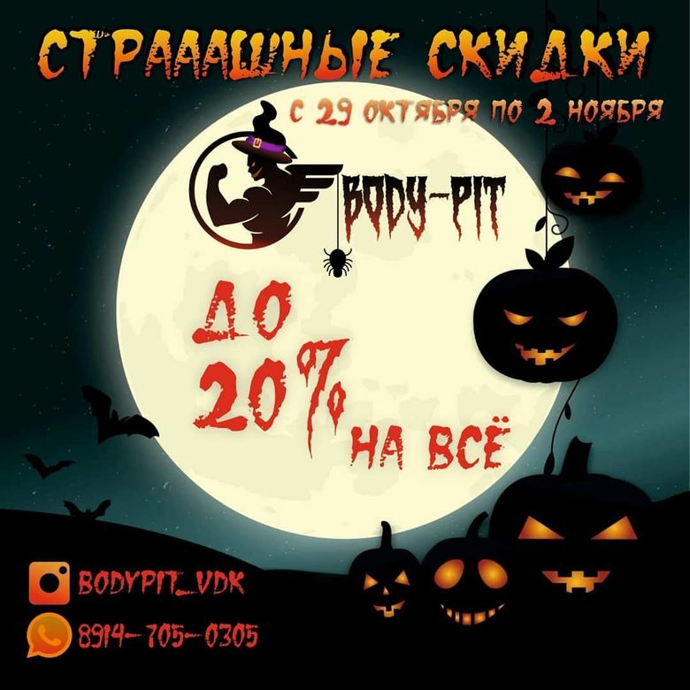 С 29 октября по 2 ноября на весь ассортимент магазина "БодиПит" действуют скидки до 20%.
