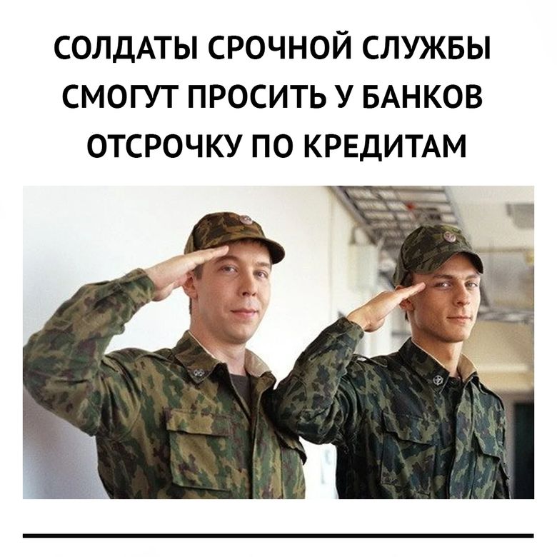 Правительство России подготовило положительный отзыв на законопроект, дающий право солдатам срочной службы просить у банков отсрочку по выплате кредитов или, как минимум, уменьшать ежемесячные платежи.
