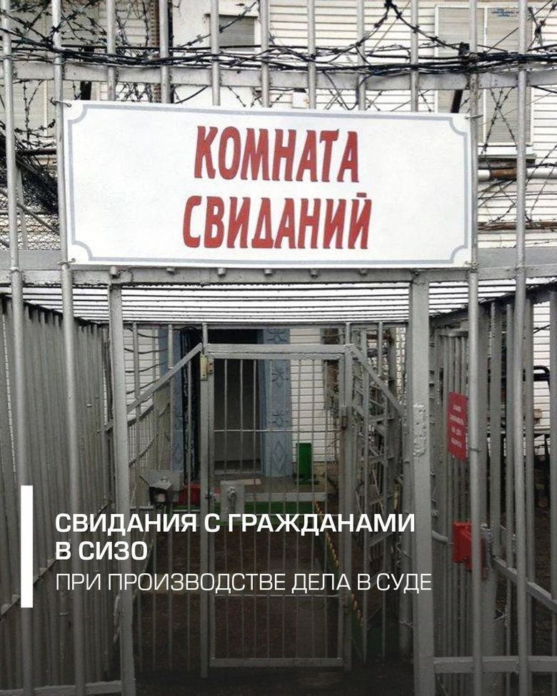 На свидание с подсудимым допускаются родственники или иные лица, либо и те и другие одновременно, но не более 2-х человек. На основании письменного разрешения судьи, а также письменного заявления лица, прибывшего на свидание, администрация места содержания под стражей (СИЗО) даёт письменное указание о проведении свидания.