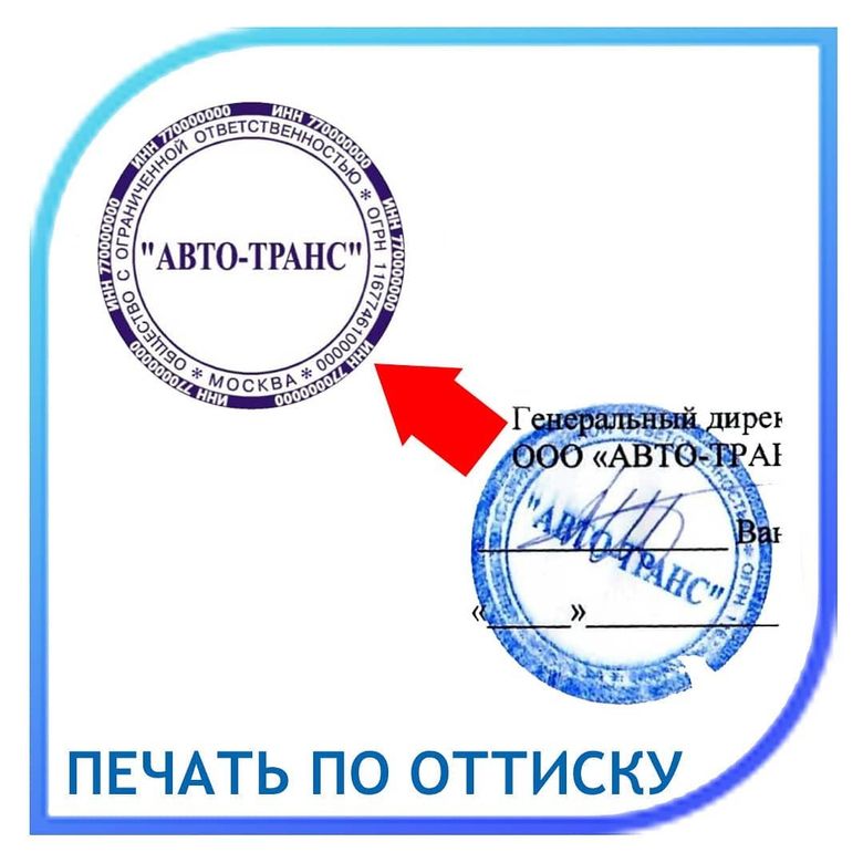 Компания "Фабрика Печатей" предлагает срочное изготовление печатей и штампов по нашим макетам. При этом мы изготавливаем не только новые печати по нашим бесплатным макетам, но и печати по оттиску - дубликаты.