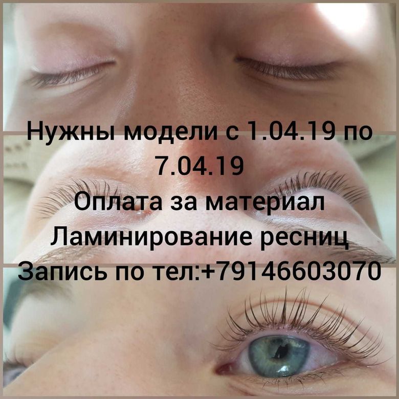 В студию красоты "Баскаковой Анастасии" нужны модели с 1 по 7 апреля на ламинирование ресниц! От Вас только оплата за материалы. Красивый и открытый взгляд, Вам обеспечен.