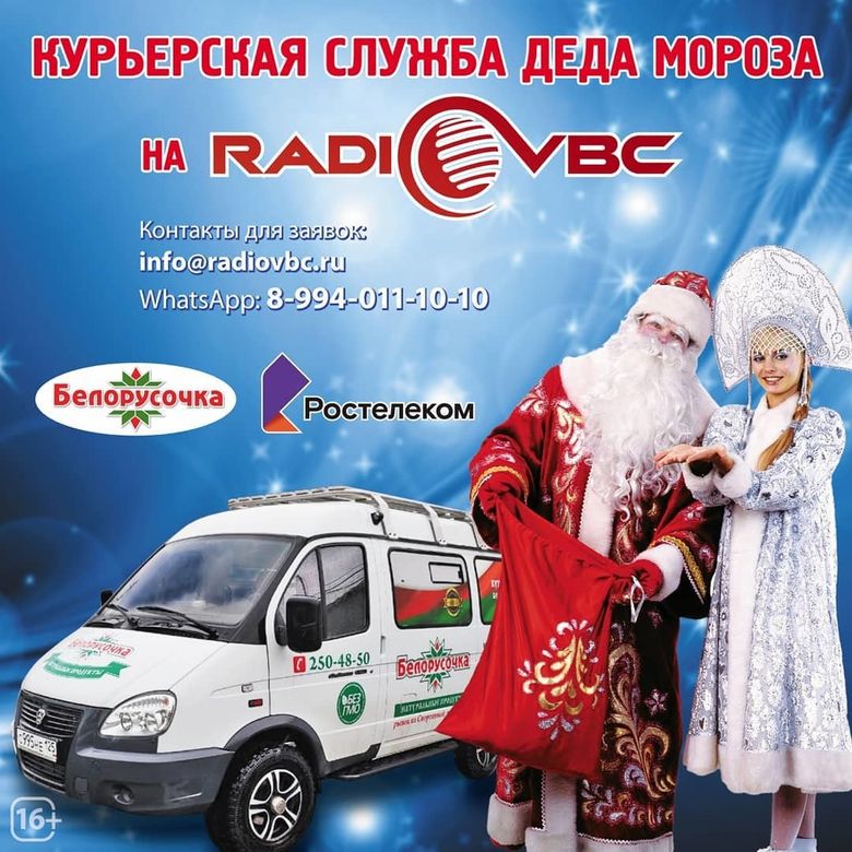 Вместе с Радио VBC с 9 по 20 декабря мы проводим акцию. Правила просты: слушайте волну 101.7 FM и присылайте поздравления для родных, друзей и коллег в Курьерскую службу Деда Мороза - сделать это можно как по электронной почте радиостанции, так и в чате WhatsApp. Брендированное авто нашего магазина, нагруженное вкусностями, будет колесить по городу и может быть приедет именно к Вам.