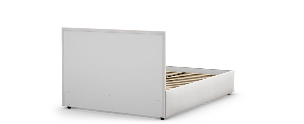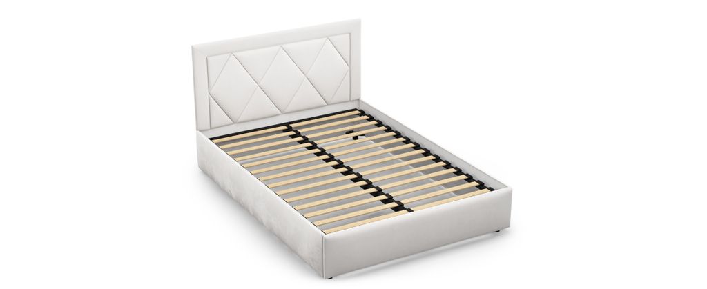 подъемный механизм с газовыми амортизаторами. Усиленное ортопедическое кроватное основание состоит из металлической разборной рамы и упругих берёзовых ламелей, что гарантирует годы активной эксплуатации без необходимости в ремонте. Ламинированная задняя спинка кровати не собирает пыль.