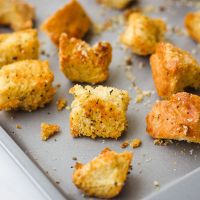 произвольной формы и размера, хоть кубик 1х1 см, хоть параллелепипед 3х4 см. Дело вкуса. Для сушки лучше использовать духовку, нагретую до 180 градусов. Порезанные кусочки аккуратно выкладываются на противень или бумагу для выпекания в один слой и отправляются в духовку на 20-25 минут. Стоит отметить, что черный хлеб содержит больше влаги, чем белый, поэтому процесс его сушки будет немного дольше - 25-30 минут. Спустя 10 минут сухарики стоит перемешать. Чтобы получить сухари с золотистой корочкой, предварительно смажьте противень или пергамент для выпекания небольшим количеством масла.