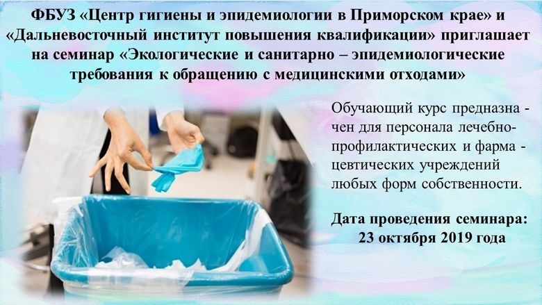 Квалифицированные лекторы АНОО ДПО «Дальневосточный институт повышения квалификации» (Лицензия на право осуществления образовательной деятельности серия 25Л01 №0001960, регистрационный № 12) совместно с опытными специалистами ФБУЗ «Центр гигиены и эпидемиологии в Приморском крае» осуществляют подготовку по следующим дисциплинам:
