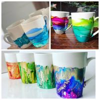 Сказочные пастельные аквашедевры наполняют положительными эмоциями, восторгом и радостью. Поскольку для здоровой оценки собственных способностей детям важно не просто создать что-то, но и использовать это в повседневной жизни, вместе с нами они не просто рисуют, но и переводят узоры на кружки.