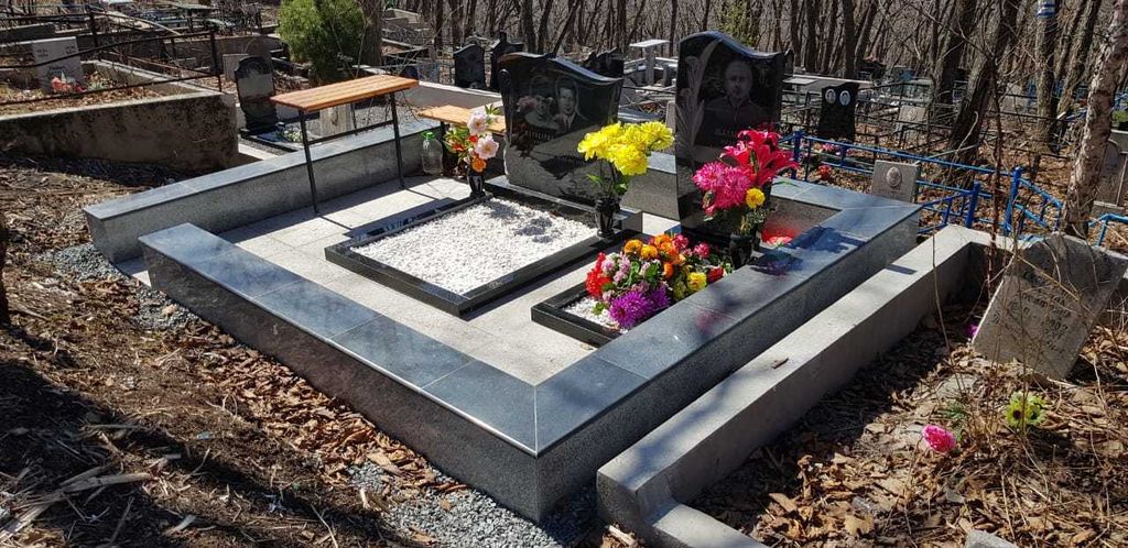 Благоустройство захоронения на кладбище осуществляется после оседания могильного холмика и обычно становится продолжением работ по монтажу постоянного надгробия. В ходе данного процесса осуществляется облицовка ленточного фундамента гранитом. Этот материал наилучшим образом подходит для этих целей.