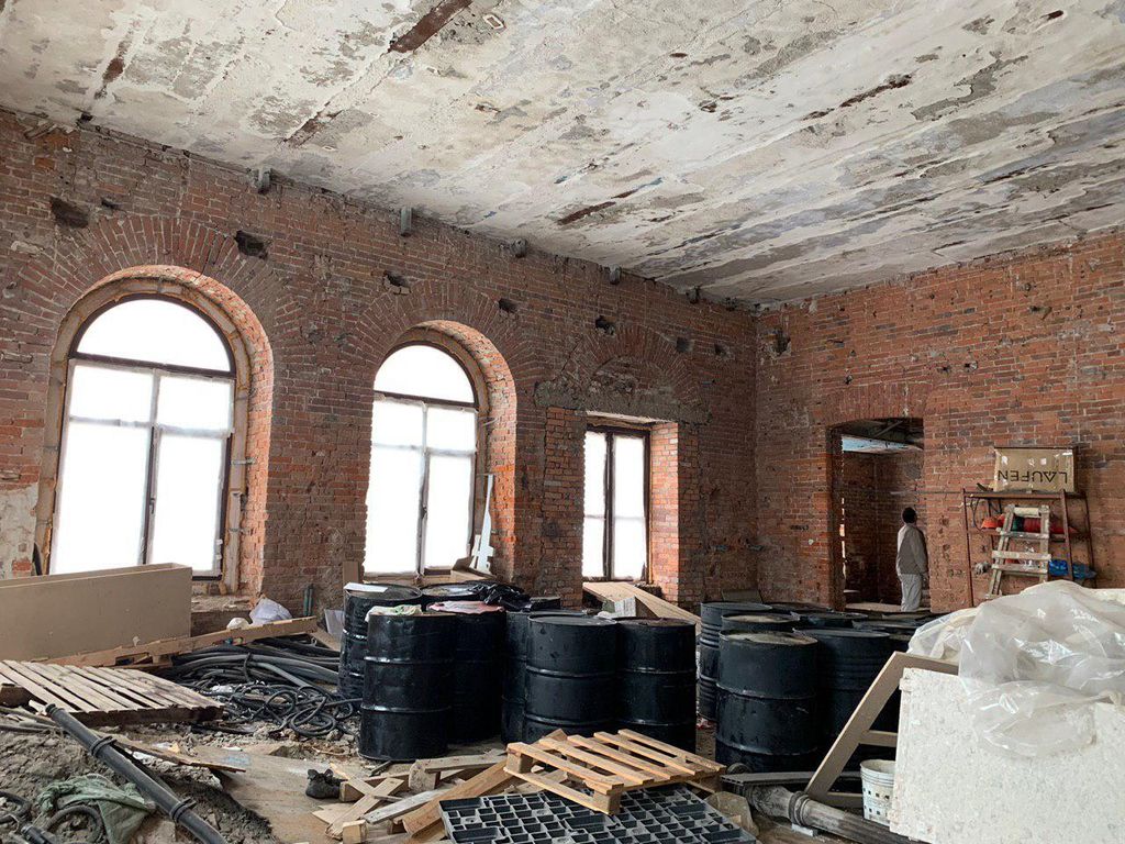 На данный момент из здания вывозят отходы, выполняют технические условия по подключению электричества и водоснабжения.