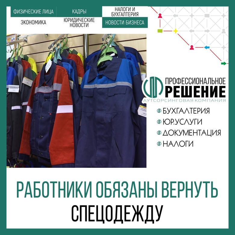 Соответственно, спецодежда, выданная работникам, является собственностью организации и при увольнении подлежит возврату.