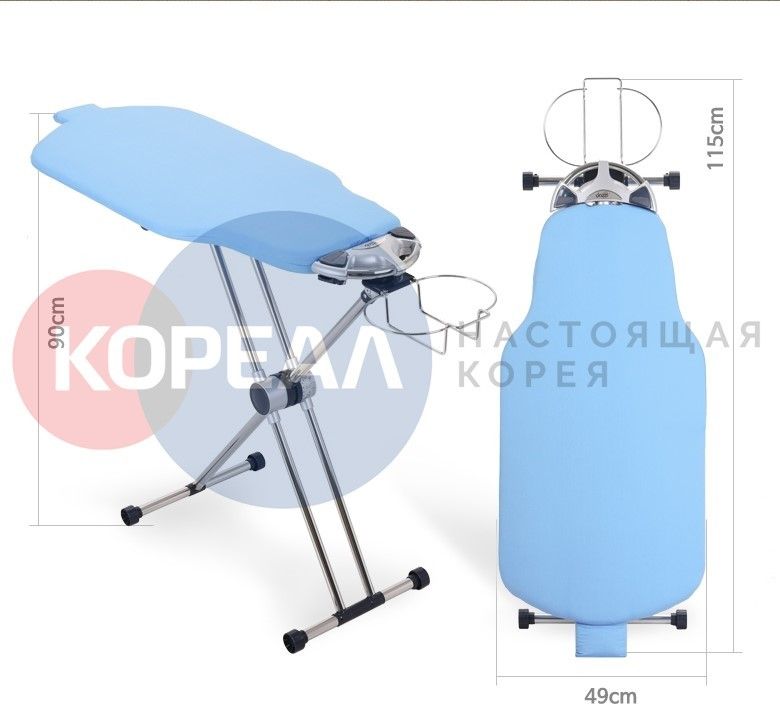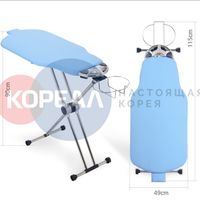 Размер гладильного стола - 90х48 см. Регулировка по высоте - 8 положений от 40 до 90 см.