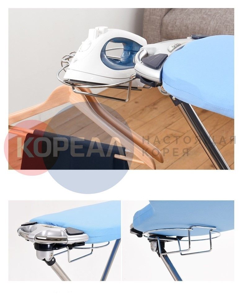 Специальные зажимы превратят процесс глажки брюк в одно удовольствие, а специальная система фиксации позволит вам закрепить доску в одном из восьми положений. Материал, из которого изготовлена доска - термостойкий перфорированный пластик - при нагреве от утюга создает воздушную подушку, что значительно упрощает процесс глажки.
