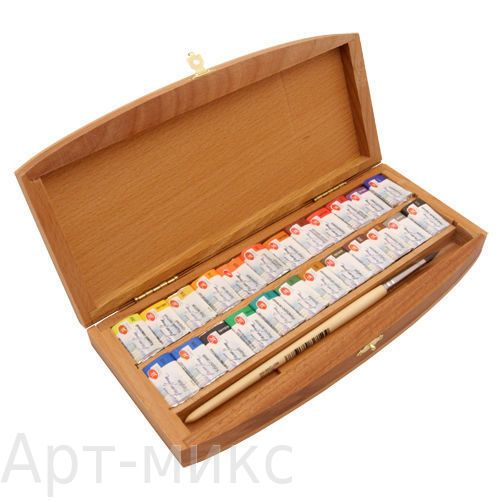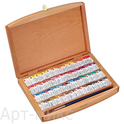 В наличии есть наборы в пластиковых и картонных коробках на 12, 24, 36 и 48 цветов, наборы в деревянных пеналах и акварель в тубах. Если вы покупаете краску для личного пользования - наборы в пластиковых и картонных коробках наиболее бюджетный вариант. Если вы хотите купить акварельные краски в подарок, можно присмотреться к наборам в красивых деревянных пеналах из бука или березы. Акварельный набор с большим количеством оттенков в приятной деревянной упаковке - полезный и интересный подарок, который осчастливит любого любителя акварели.