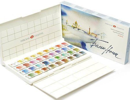 "Белые ночи" - художественные акварельные краски наивысшего качества. Популярны у опытных художников, так как обладают высокой интенсивностью цветового тона, сохраняющейся даже при разбавлении большим количеством воды. Это обеспечивается высокой концентрацией пигмента и тонкостью его перетира. Равномерно и легко разносятся по бумаге, хорошо смешиваются между собой и с другими красками.