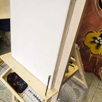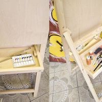 На малую полочку можно устанавливать холсты, планшеты, куски ДВП. Работать будет не так удобно, как с универсальными или профессиональными мольбертами, так как на "Алане" не получится надежно зафиксировать холст и изменить высоту его расположения.