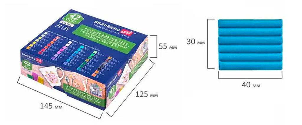 Набор пластики для запекания 42 цвета по 20 г, + аксессуары, в подарочной коробке, Brauberg