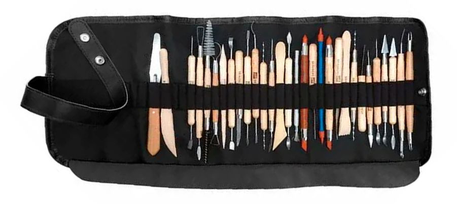 В набор входит 30 инструментов для лепки, самых разнообразных по форме и размеру, из дерева, металла и пластика: