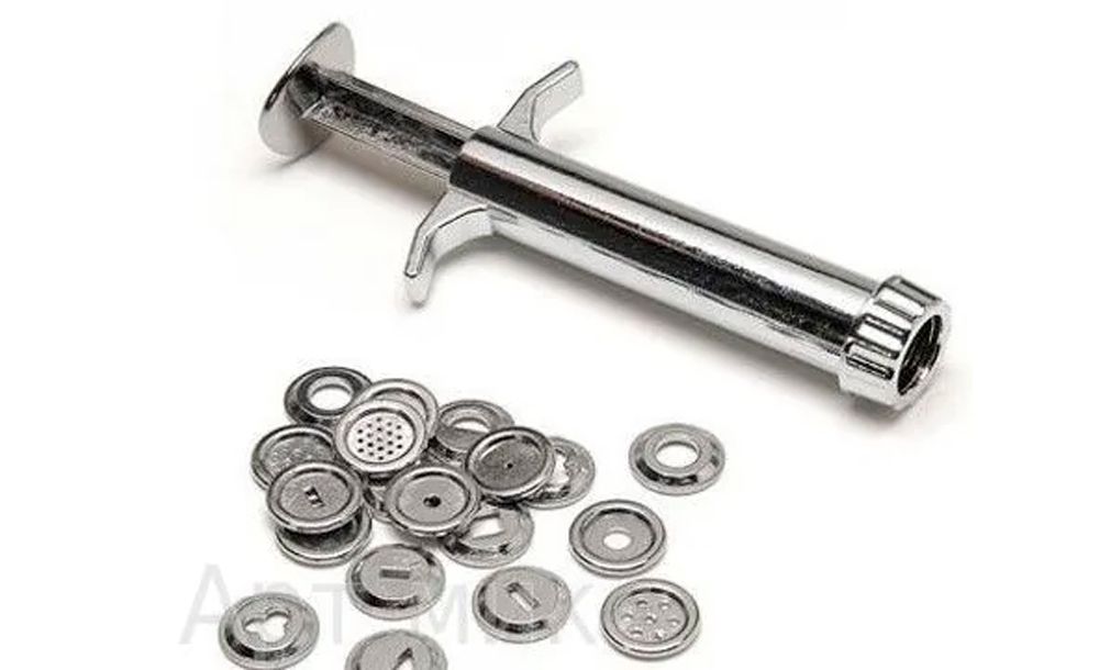 Пресс экструдер для полимерной глины сделанный из металла, в комплекте с 19 насадками. При помощи его можно получать разнообразные полоски пластики в зависимости от выбранной насадки. Для достижения хорошего результата полимерная глина перед заправкой в экструдер должна быть тщательно размята, после использования тщательно очистите внутреннюю поверхность и диск который использовался.