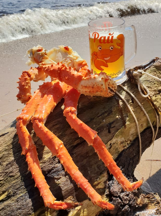 Краб полный с сочным вкусным мясом. Отличный вариант как для пятничного вечера дома за просмотром сериала в кругу семьи, так и для времяприпровождения с друзьями. Хотите выехать на природу на выходные? Кроме мяса возьмите еще и морепродуктов в качестве закуски к пенному;)