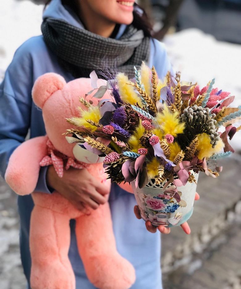 Наши флористы создадут красивый и необычный цветочный подарок из сухоцветов или живых цветов к романтичному празднику. Помимо цветов в наличии открытки ручной работы, мягкие игрушки, шикарные стильные воздушные шары и упаковка для оформления подарков.