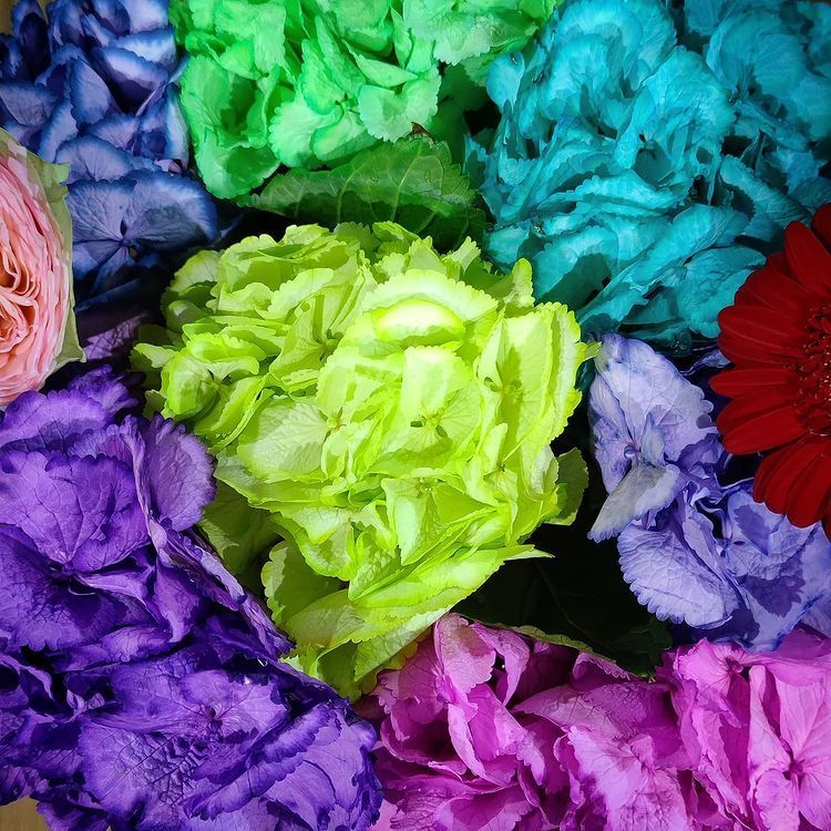 Цветочный магазин RICCHROZA объявляет: голландские гортензии успешно победят туманную хандру и разгонят уныние буйством красок. Устройте дома радугу! Учитывая стойкость срезанных гортензий, запаса их великолепия должно хватить до лета ;-)
