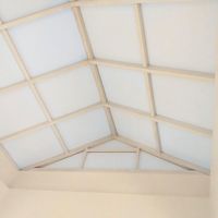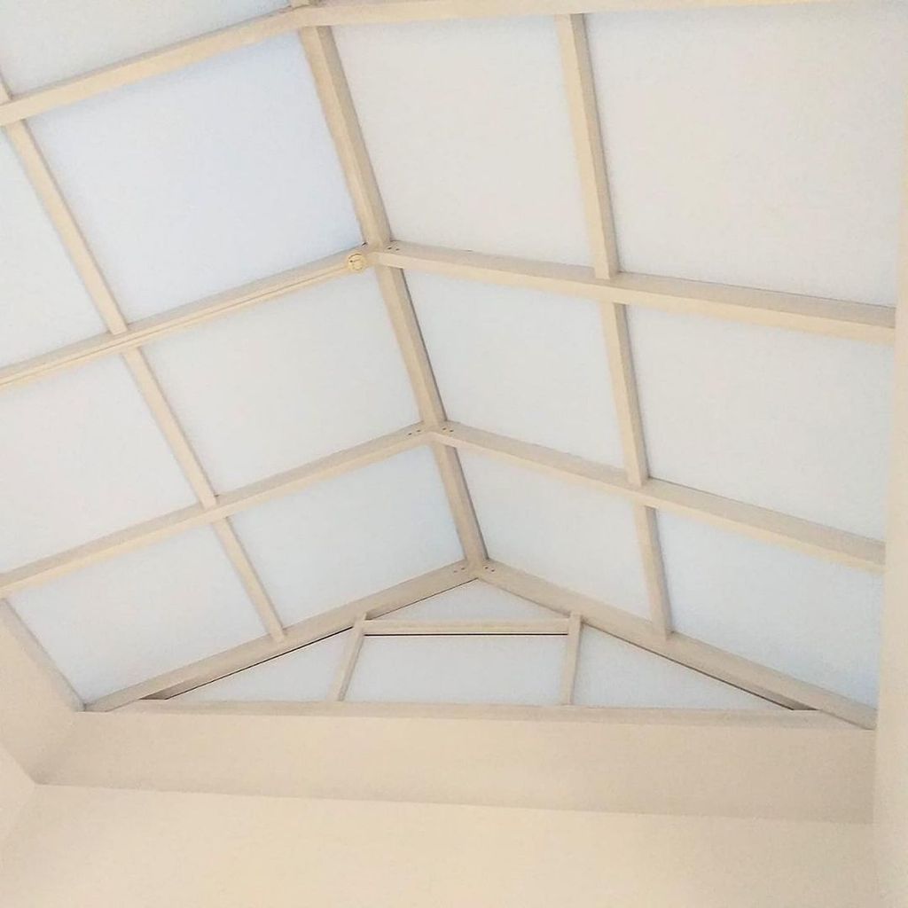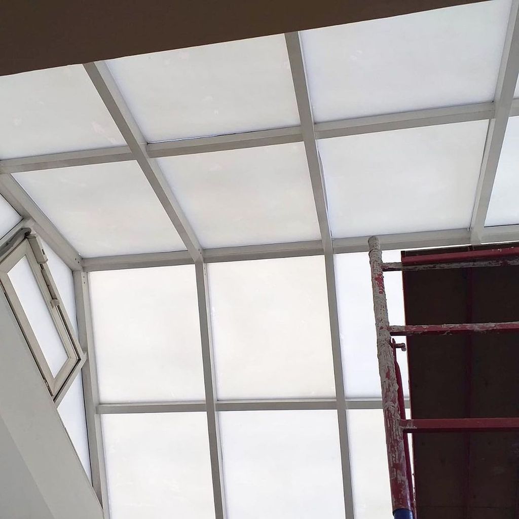 Специалисты Рекламно-технического сервиса выполнили накатку белого оракала на потолочные витражные окна для защиты помещения от попадания прямых солнечных лучей.