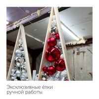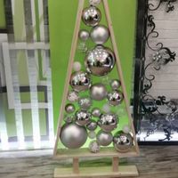 - Основа - деревянный каркас. Декор - шары диаметром от 6 до 20 см различных цветов, в том числе прозрачные с наполнителем.
