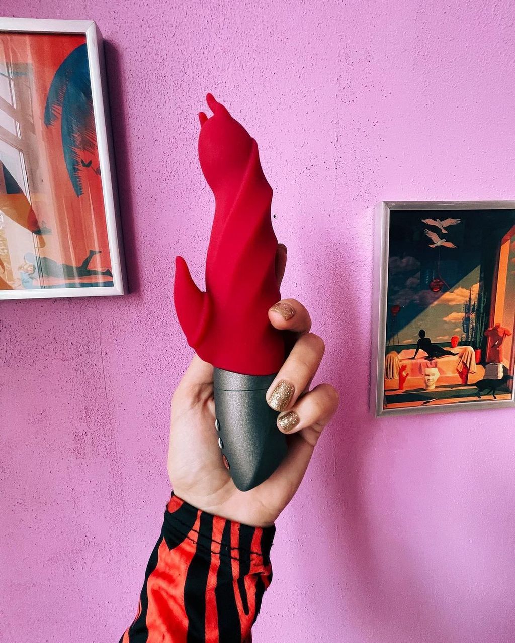 Рожки "Дьявола" выглядят на первый взгляд устрашающе, но на деле это мягкие и гибкие крошки. Складки плаща же — подходящая ребристая поверхность для приятных фрикций.