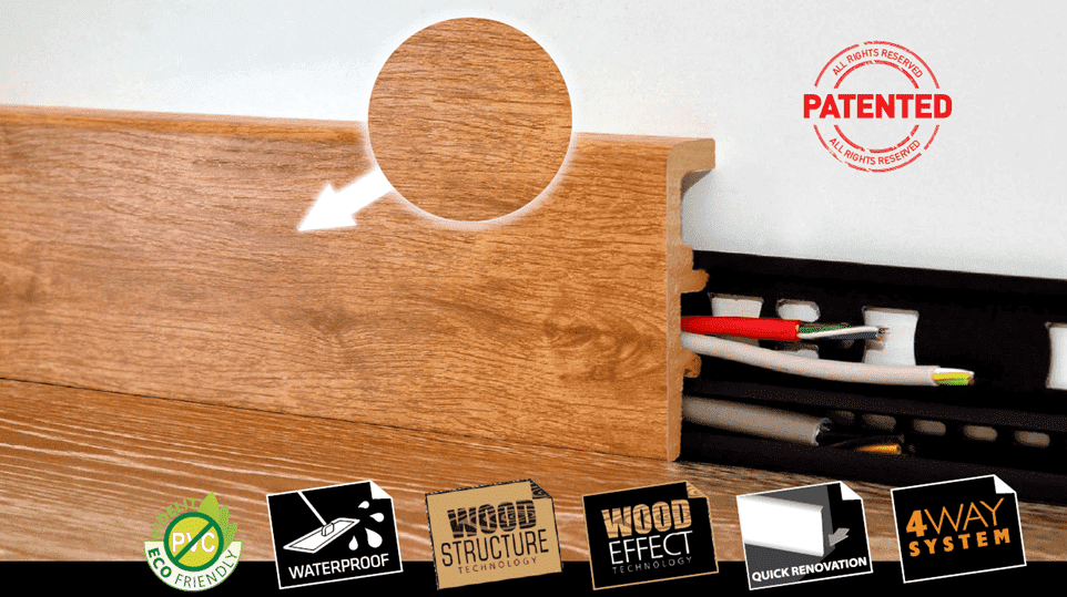 В чем же заключается "продвинутость" данного материала? Дюрополимер высокопрочный и износостойкий материал, который не боится перепадов температуры и влажности, а значит, не подвержен гниению. Кроме того, дюрополимер экологичный и безопасный для здоровья. Если таков материал, то и плинтус из него не хуже: он ударопрочный, водостойкий, а главное - легкий!