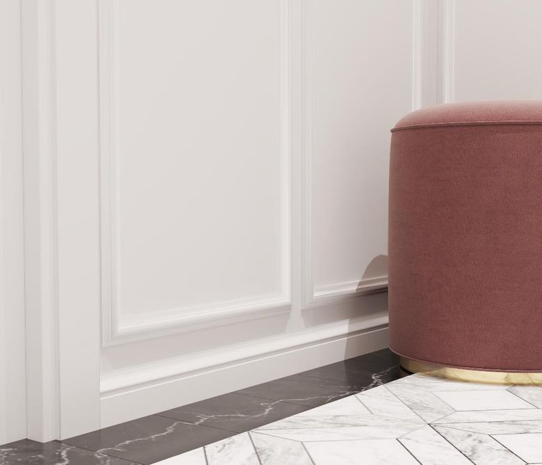 В наличии в "Периметр" есть как белый под окрашивание, так и уже окрашенный плинтус под цвет дерева. Размеры: 50 мм, 70 мм, 80 мм и 100 мм.