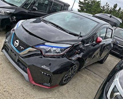 Одним из доставленных нами во Владивосток "битышей" стал NISSAN NOTE в комплектации E-POWER NISMO. На аукционе автомобиль имел оценку R. Оценки 0, R, А и *** дают понять покупателю, что авто восстановленный или продается после ДТП битым.