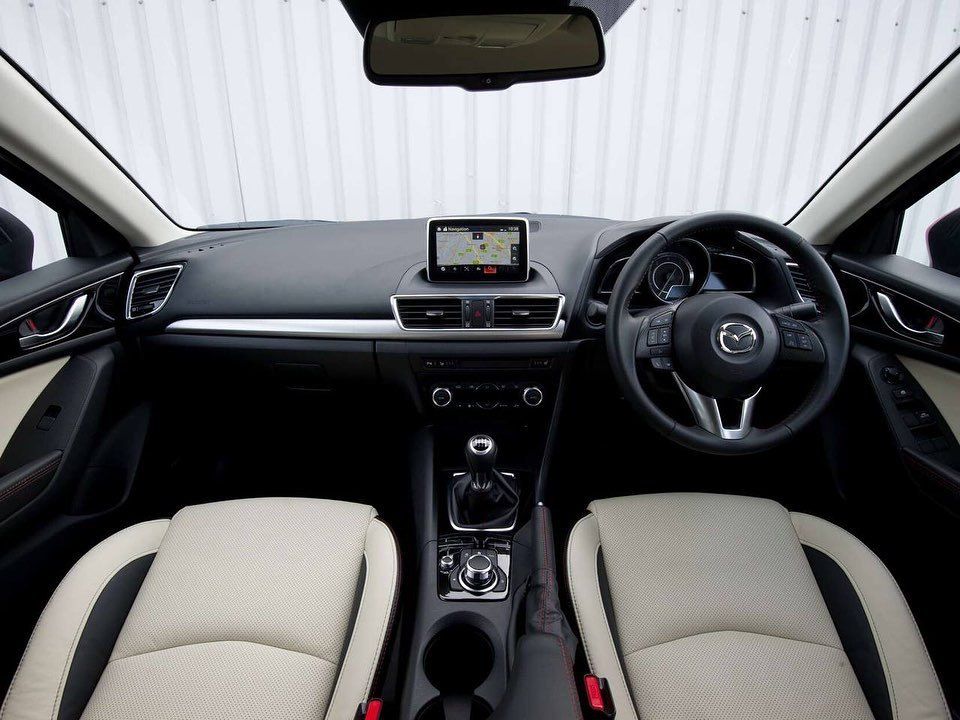 Машина получила небольшие доработки во внешности: изменились передний и задний бамперы, фары и решетка радиатора. В салоне Axela появилось новое рулевое колесо, иное оформление приборной панели и дверных карт, улучшенный дисплей, а также электрический "ручник" в более дорогом исполнении.