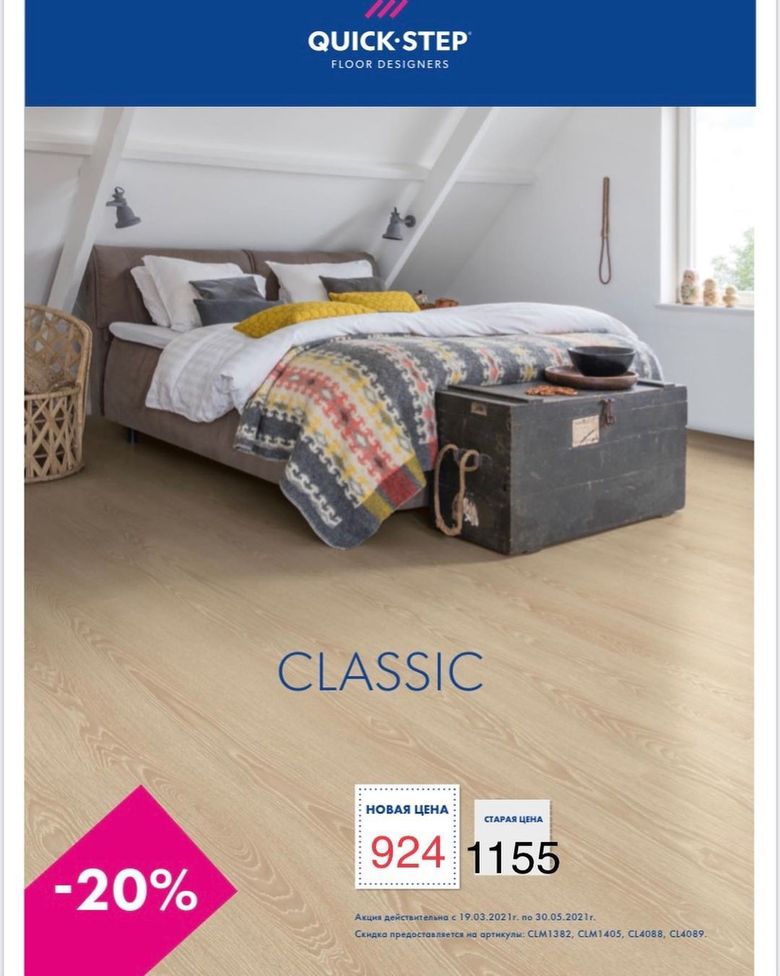 Линейка "Classic" - одна из самых популярных и недорогих коллекций в ассортименте Квик Степ. Большинство декоров имеет неглубокую 4-х стороннюю микрофаску по периметру доски. Компания Quick-Step является изобретателем системы монтажа Uniclic, которая сегодня стала стандартом замковых систем монтажа. В салоне напольных покрытий "Грейт" до 30 мая 2021 можно приобрести ламинат из этой коллекции следующих расцветок -