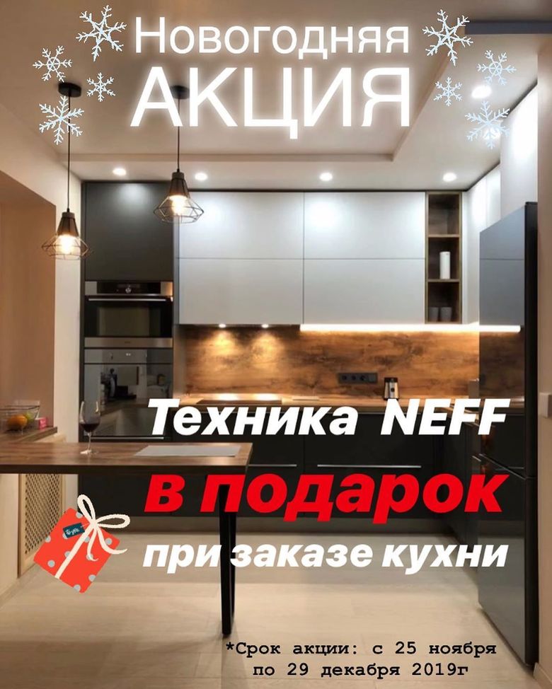 С 25 ноября по 29 декабря 2019 года закажите стильную кухню в фабрике мебели «Венеция» и получите подарок. Два варианта подарка на выбор: электрическая варочная панель Neff T11B41X2RU или встраиваемая посудомоечная машина Neff S581F50X2R.