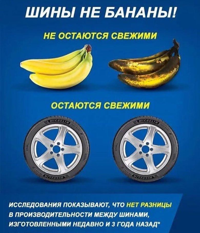 Пожалуй, самый распространенный вопрос при покупке шин: насколько важна дата производства? "ШИНЫ - НЕ БАНАНЫ" - отвечает по этому поводу компания Michelin.