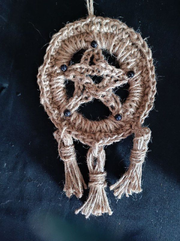 При создании оберега использовалась натуральная джутовая нить и авантюрин. Три обережжных подвески символизируют дух, тело и душу.