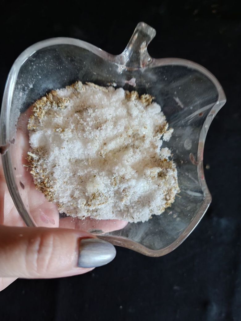 Что я делаю? Я заговариваю соль на очистку помещения. Соль ароматная и содержит траву, но сама трава - не дым, поэтому аллергикам не страшна. К тому же не нужно ходить со свечой в руках и начитывать заговор.