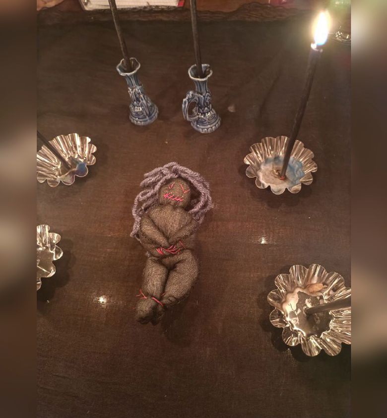 Кукла символизирует тех, кто вредит. У многих пропадет желание вам вредить и возможность — нитками зашит рот, связаны по рукам и ногам.