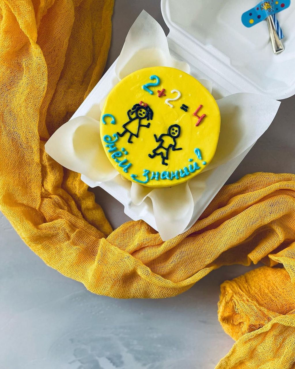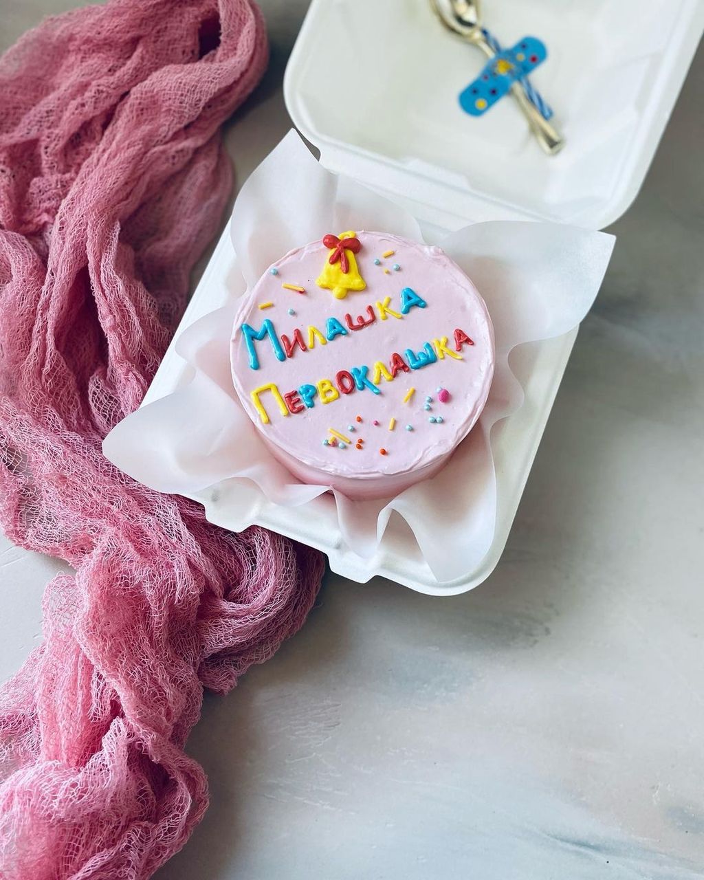 - Малыши бенто-тортики. Любые надписи и рисунки от нейтральных до хулиганских. Покажите своему школьнику, что вы его поддерживаете. Вручите классному руководителю, ему тоже надо не падать духом. Скушайте сами, в конце концов, это вас ждут бесконечные "мам, пап, я ничего не понял" и "да нам ничего не задали". 999 рублей за 350 грамм чистого воодушевления.