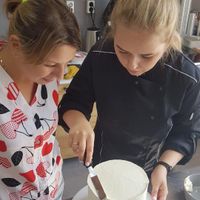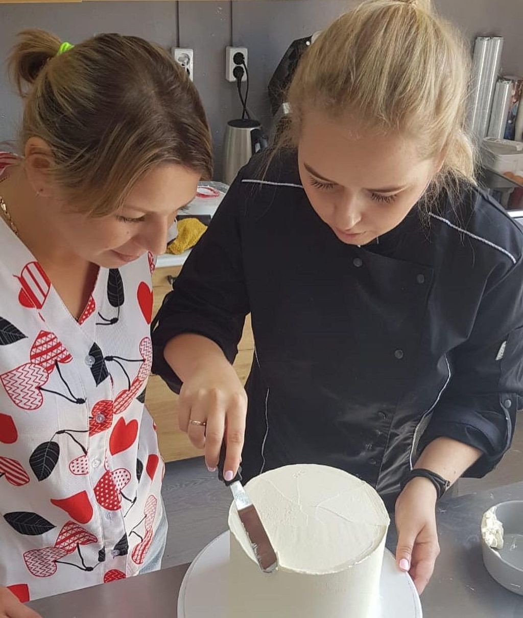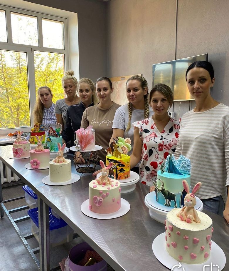 Наши ученики сами собирали торт, учились идеальному выравниванию, работали с фальш-ярусом, красили аэрографом, рисовали на тортах, делали рисовые паруса, работали с сахарными картинками, делали леденцы, безе, шарики, лепили фигурки из мастики, божечки да все не упомнить.