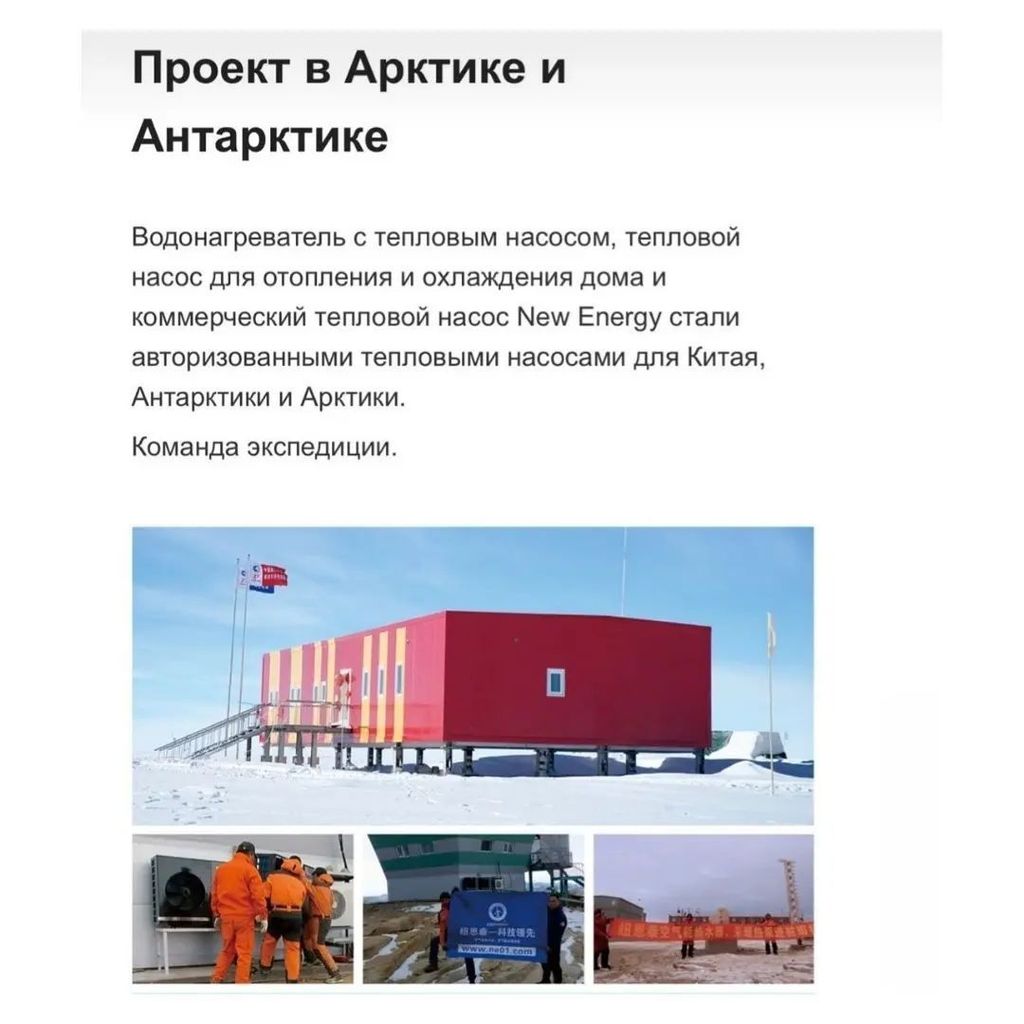 Прежние линейки насосов NEW ENERGY маркируются морозоустойчивостью до - 20 градусов. Тем не менее множество успешных проектов доказали их эффективность и в более холодных условиях. Чего только стоит участие насосов NEW ENERGY в экспедициях в Арктику и Антарктику!
