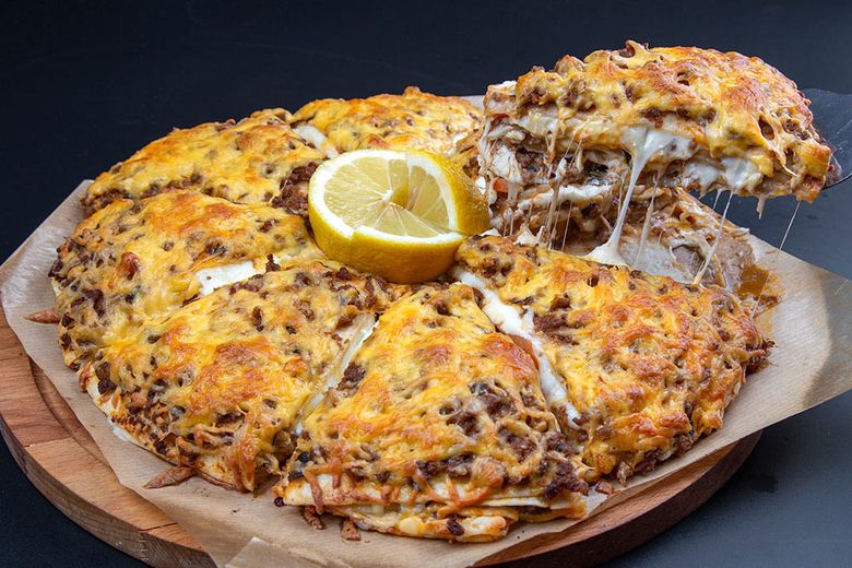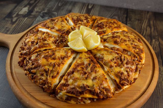Четырехэтажная острая пицца "CrazyЛамаДжо" изготовлена на основе традиционного армянского рецепта. Внутри качественный говяжий фарш, свежие помидоры, два вида сыра и фирменный соус от Crazy Brothers. Украшена пицца лимоном.