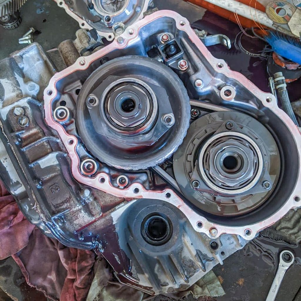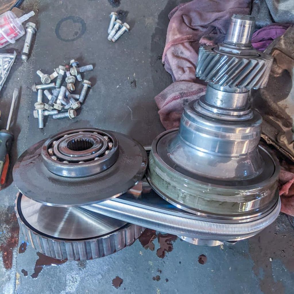 Специалисты автосервиса произвели снятие вариатора и осмотрт в ходе которого выяснилось, что подшипники конусов вариатора и правый подшипник деференсала износились и нуждаются в замене. По окончанию работ заменили жидкость и фильтр.