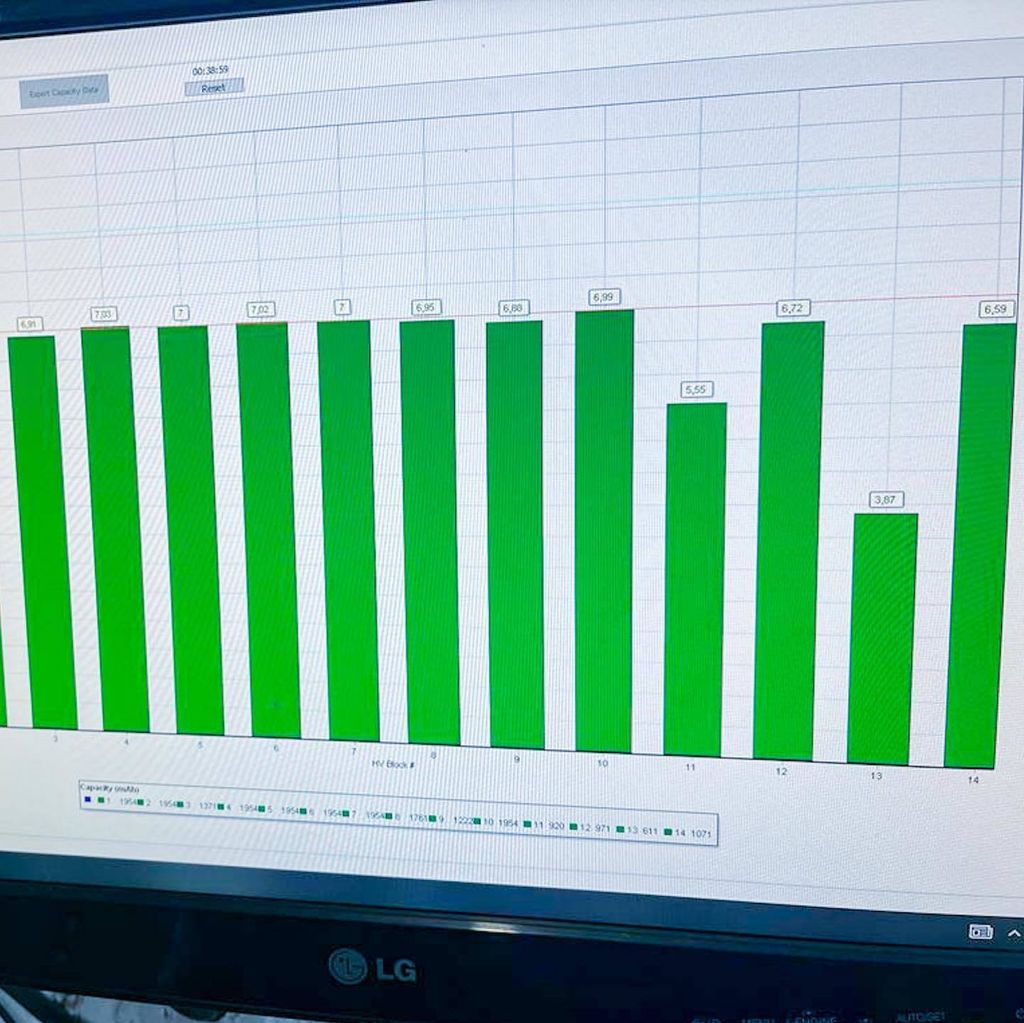 Специалисты автосервиса выполнили компьютерную диагностику, которая показала пропуски зажигания в третьем цилиндре и просадку в середине ВВБ. Было принято решение о ремонте высоковольтной батареи.