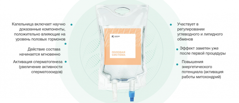 Курс капельниц "Половая система" также может стать верным помощником при подготовке к зачатию и для улчшения эректильной функции.