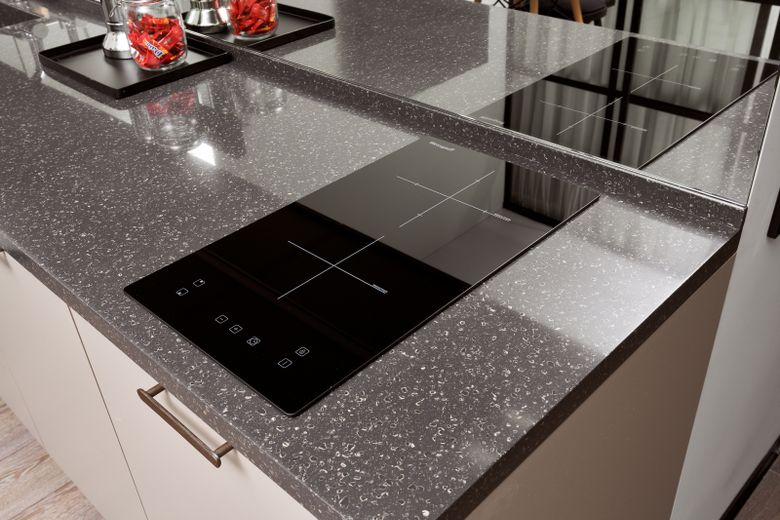 - Стеклокерамика выглядит очень стильно, не боится жира и кислот. При повседневной уборке достаточно протереть ее тканью или очистить специальным скребком, а вот пригоревшие жидкости нужно удалять специальными неабразивными чистящими средствами и скребком. Если речь идет об электрической панели, то удобство стеклокерамики в том, что она остается холодной за пределами границ конфорок, быстро нагревается и остывает. Однако стеклокерамика, как и закаленное стекло, «боится» сладких жидкостей – при нагреве сахар способен оставлять на плите пятна. Кроме того, это достаточно хрупкий материал, который может треснуть, если на раскаленную конфорку попадет вода, упадет нож или кастрюля. В случае с электрическими панелями это потребует ее замены целиком.