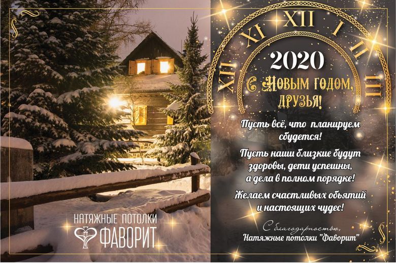 Год подходит к финалу и ПРЕДновогодние скидки, действующие в ДЕКАБРЕ, волшебным образом превратятся в НОВОГОДНИЕ! Весь январь продолжаем дарить подарки! Ваша Скидка может составить 20% от общей стоимости натяжного потолка. Поздравляем и желаем хорошего года с хорошими натяжными потолками от компании "Фаворит".
