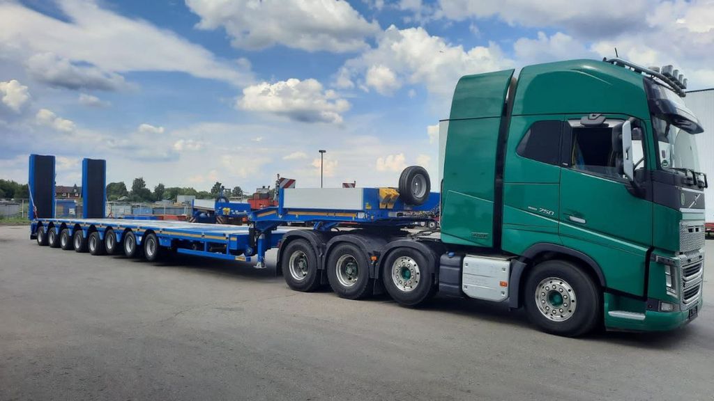 Наш автопарк пополнился тральным полуприцепом Faymonville MultiMAX - единственным на всем Дальнем Востоке. Его длина - 14 метров с возможностью раздвижки до 34 метров. Ширина площадки составляет 3 метра с возможностью увеличения до 3,6 метров. Трал имеет 8 осей, из них 4 - поворотных. С помощью этого трала можно перевезти практически все, что угодно: ЖБИ, цистерны, производственное оборудование, несколько единиц спецтехники за раз и многое другое.